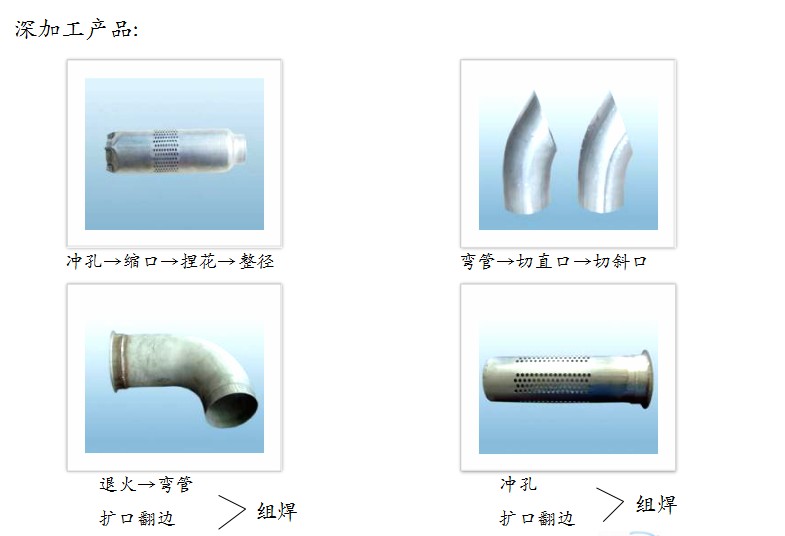 是一家專業(yè)從事焊接不銹鋼管生產(chǎn)及銷售的民營企業(yè)。公司于2001年籌資組建。公司占地面積1.5萬平方米,建筑面積1.2萬平方米,擁有3000平方米廠房2座。2010年末公司銷售額達(dá)到2億元人民幣。 公司擁有國際領(lǐng)先水平的TIG焊生產(chǎn)線14條,3500W/5000W激光焊生產(chǎn)線2條,光亮退火生產(chǎn)線2條,高頻焊生產(chǎn)線1條。產(chǎn)品涵蓋:材質(zhì)從不銹鋼304、309、316、321、409L、429、432、441、409AL到SA1D、Fe。管徑從6-133mm(在線制管),133-460mm(卷焊)。壁厚從0.5-3.0 mm。廣泛用于汽車消聲器以及排氣系統(tǒng),排氣彎管,消聲器筒體,排氣組件等不銹鋼管產(chǎn)品系列。 公司生產(chǎn)工藝和技術(shù)裝備達(dá)到國際先進(jìn)水平,已通過ISO9001:2000和TS16949:2002質(zhì)量管理體系認(rèn)證。為保證生產(chǎn)出合格的產(chǎn)品,公司配備了焊縫跟蹤系統(tǒng)、渦流探傷系統(tǒng)、彎、擴(kuò)、縮等機(jī)械測(cè)試裝置。手持式X熒光光... 速對(duì)金屬材質(zhì)進(jìn)行化學(xué)分析和鑒定。通過儀器防錯(cuò)、力學(xué)性能、硬度測(cè)試、化學(xué)成分分析、金相分析實(shí)驗(yàn)等1系列檢測(cè)程序嚴(yán)格保證產(chǎn)品質(zhì)量。為了...
